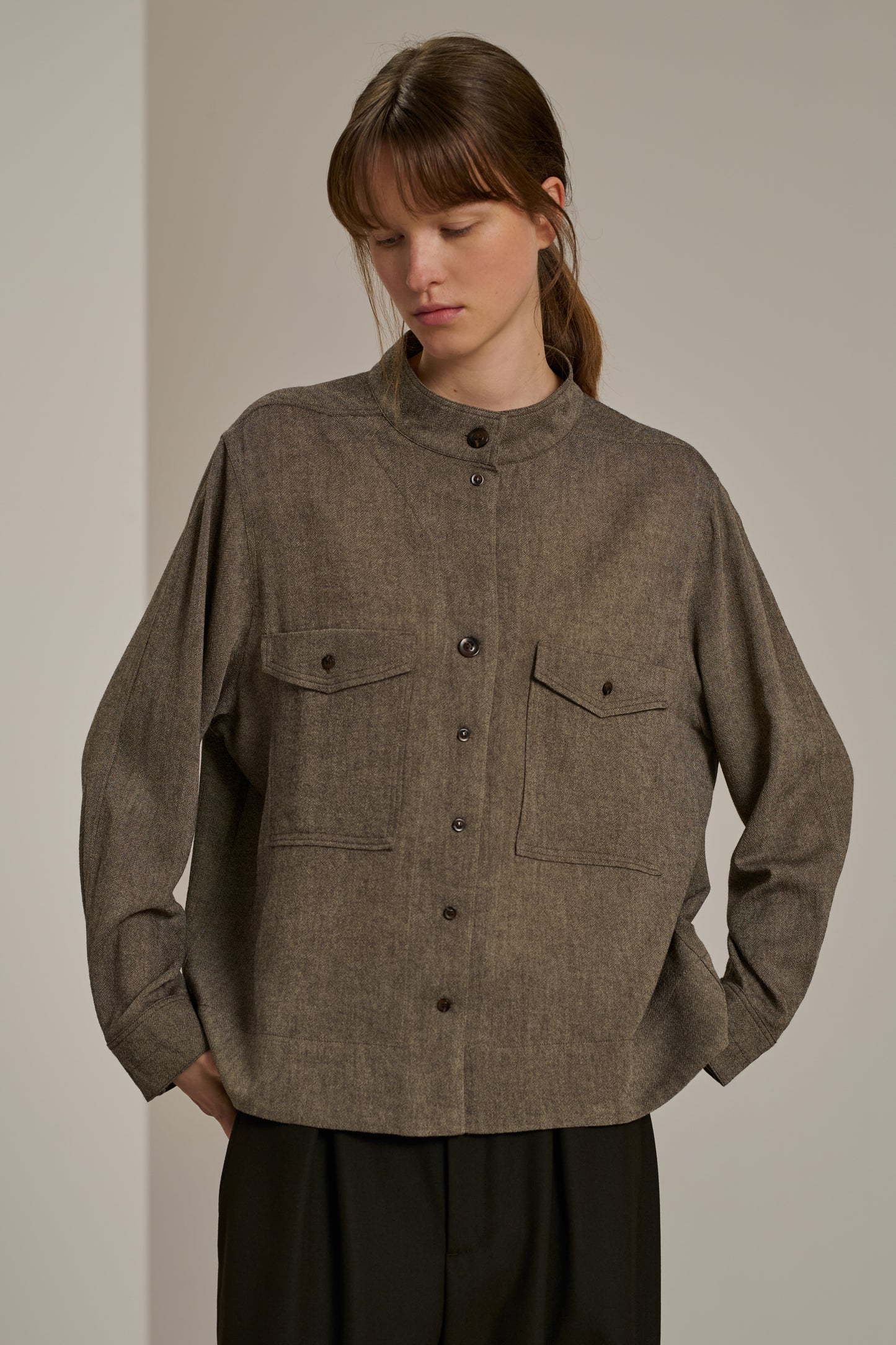 Wool Crepe Blouse brown/ecru